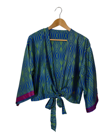 Confectionné avec un sari de soies mélangées vintage.