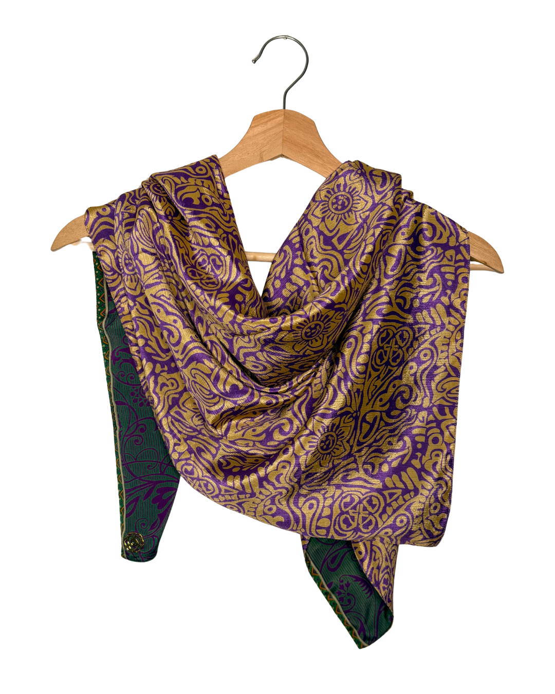 Grand foulard carré de 90 cm x 90 cm réversible.