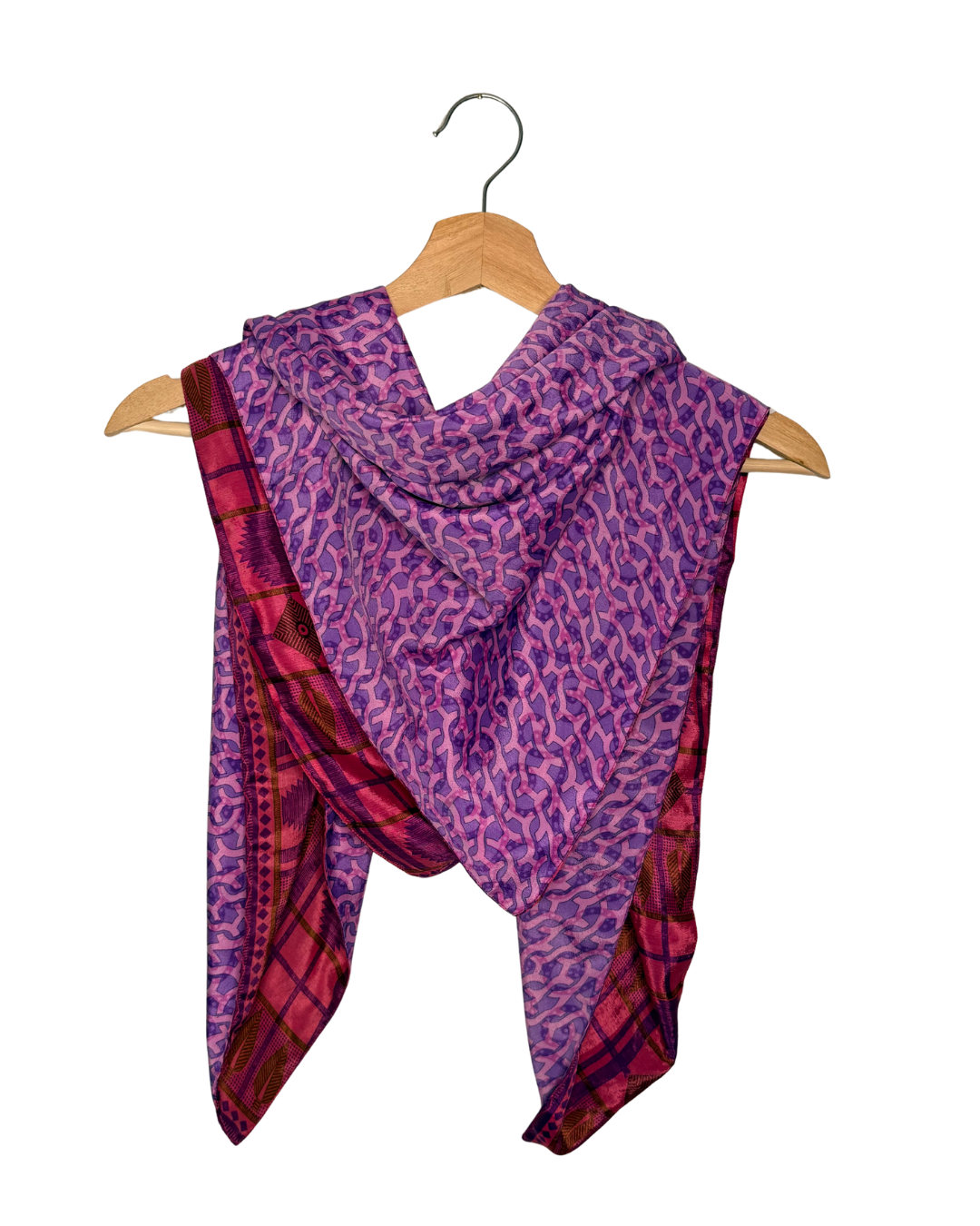 Grand foulard carré de 90 cm x 90 cm réversible.