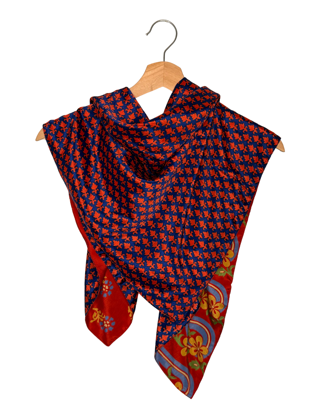 Grand foulard carré de 90 cm x 90 cm réversible.
