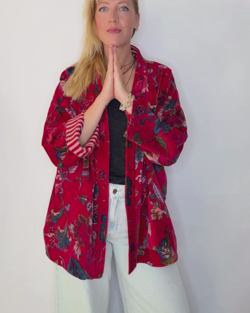 Veston kimono en velours de coton avec des poches, vient avec une ceinture.