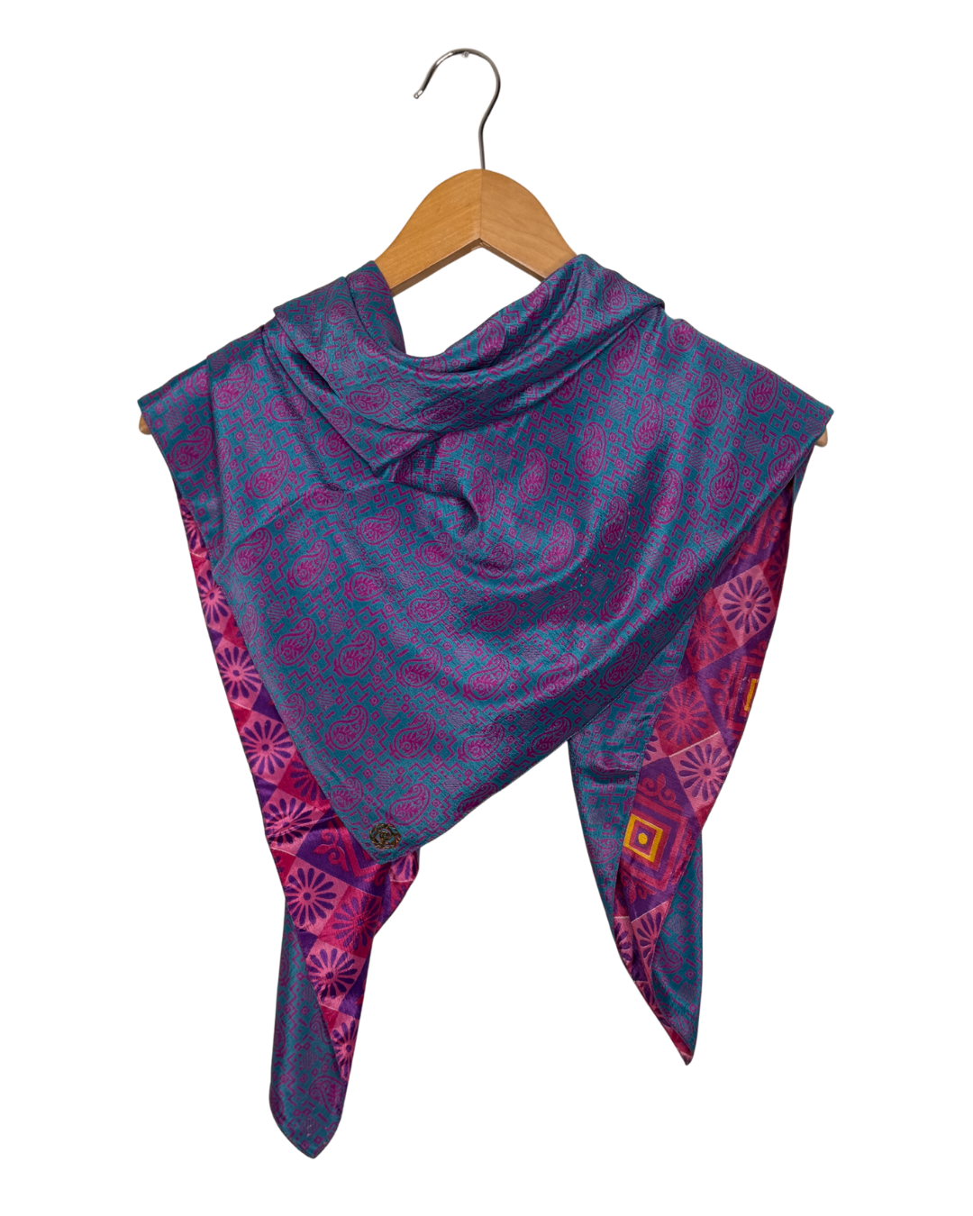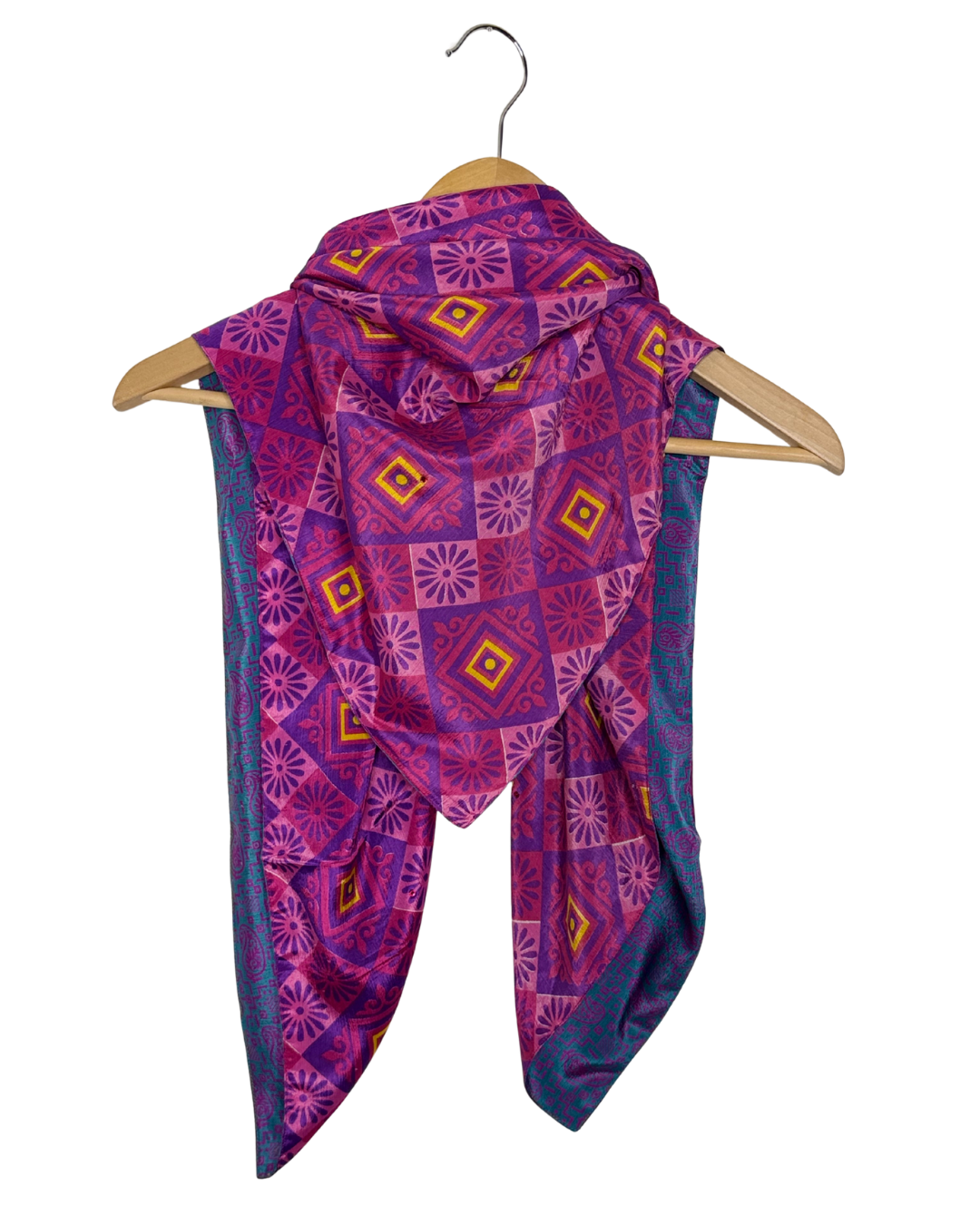 Grand foulard carré de 90 cm x 90 cm réversible.
