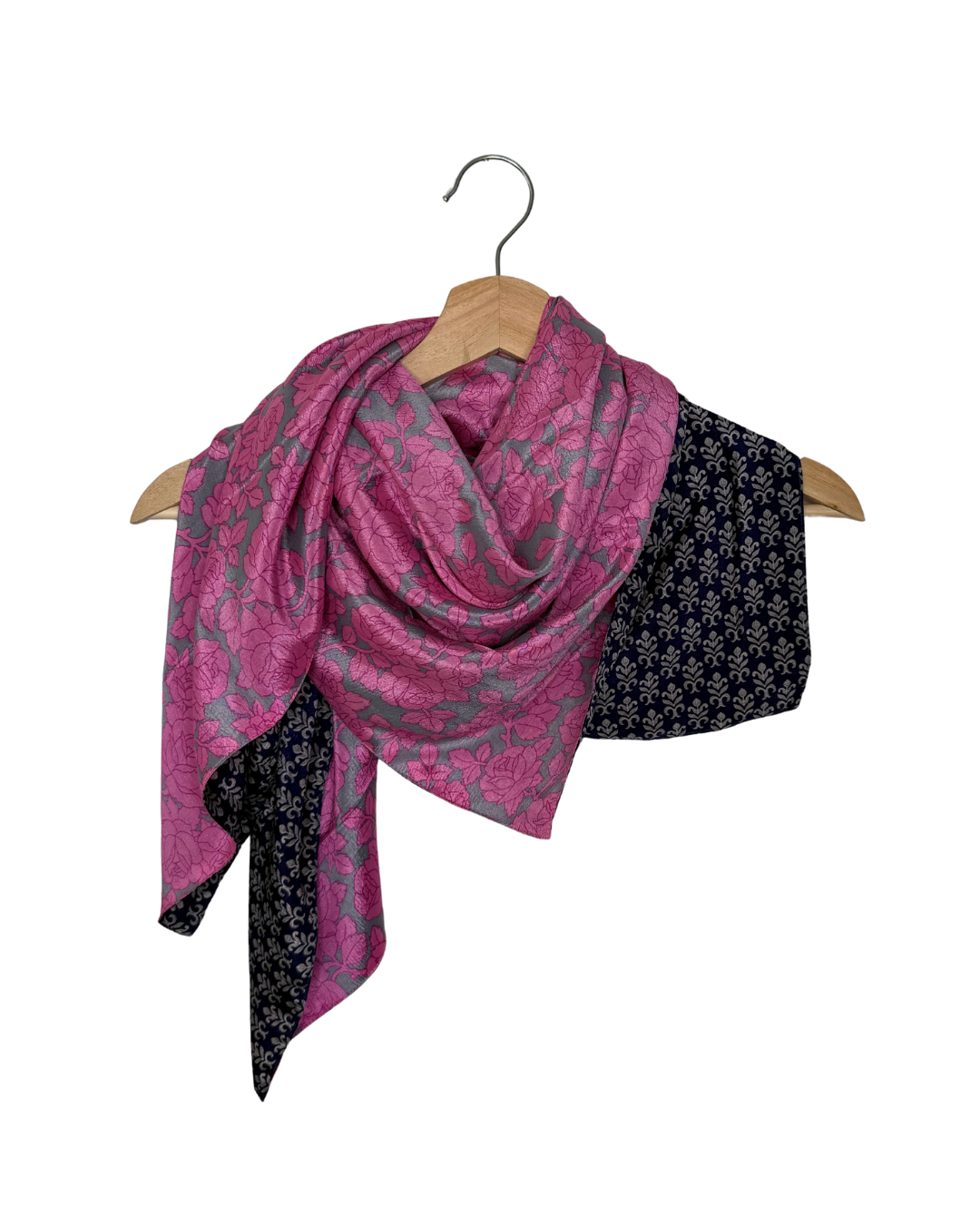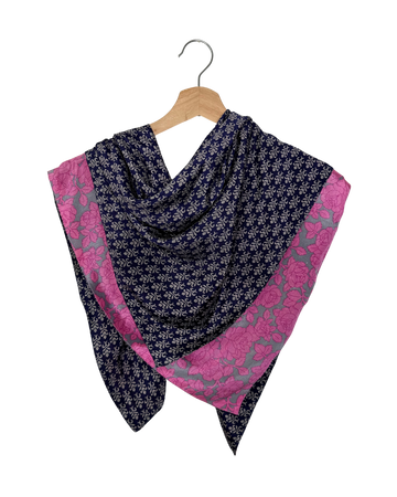 Grand foulard carré de 90 cm x 90 cm réversible.