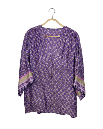 Blouse en sari de soies mélangées vintage aux manches 3/4.