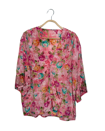 Blouse en sari de soies mélangées vintage aux manches 3/4.